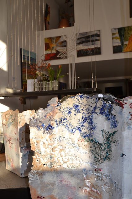 SCULPTURE "masque" en raku de Marina Latta - "OROGENESE"de Sylvie Guyomard - "PENDANT CE TEMPS LA" d'Elodie Chanu